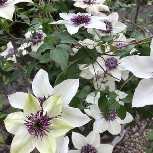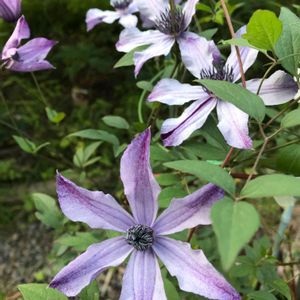 コピペです😅 はなせきぐちさんのオリジナル品種!ティンクルパープルは、2cmほどの小さなベル型の花を咲かせるかわいらしい品種。この花型のタイプは夏に強い反面、うどん粉病にかかりやすい欠点がありましたが、ティンクルパープルは数百に及ぶ株からうどん粉病にかかりにくい株を選抜したものです。ティンクルピンクより花が若干大きく、株も伸びます。つるが2m以上伸びてから花が咲くので、フェンスやオベリスク等に絡ませて咲かせるのがおすすめです。 花後の夏時期の剪定(切り戻し)は、春から伸びたつるの半分くらいで行うと、秋に再び花を咲かせます。 ティンクルピンクってのもあります。 今は横方向に伸ばしてます 伸びるトコまで伸ばして 止まったら花を楽しんでから 半分くらいで ✂️ かな?