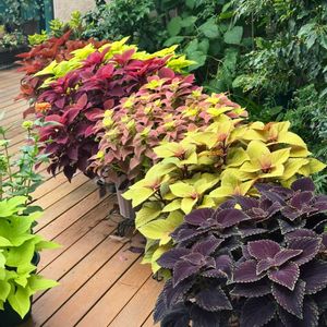 栄養系コリウスは霜が降るまで長く楽しめてお得🉐 朝晩の寒暖差で色鮮やかになりました。 6月からポット苗を2週間に1度の割りで摘芯して葉っぱを増やして来ました😊💕 🏷️栄養系コリウス^_^