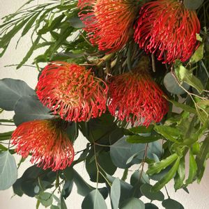 切り花でお迎えしたピンクッション、綺麗なオレンジ色です🤩🧡 昨日庭からカットしたユーカリポポラスとドドナエアに合わせてこれからドライにしていきます🧡 水上げで切ろうとしたら硬〜いっ😅植えても台風大丈夫そうな木の感じ👌アザミみたいだけど痛くないです😊 別名、流通名: レウコスペルマム、リューコスペルマム ネットからℹ️ 🧡ピンクッションは、南アフリカ原産のヤマモガシ科の常緑低木。裁縫の針山に針が刺さっているような花の形なのが名前の由来です。 🧡花色は橙、赤、黄があります。交配は鳥類あるいは虫媒によります。花保ちが良いため切り花に使われるほか、ドライフラワーとしても楽しめます。