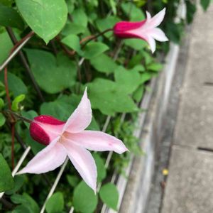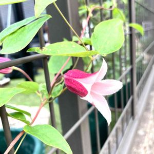 冬の植え替えをしたとき、根がまわりすぎて少ししか土を落とせず、ほとんど用土替えができないまま鉢に戻したクレマチス「エールフクシマ」。花が咲くか心配でしたが、可愛いチューリップ型の花が無事咲きました💖 120cmのトレリスに這わしているのですが、全然足りなくてはみ出て咲いています💦鉢植えにトレリスで管理するのは難しいのでしょうか❓来年はどうしようかなぁ🙄