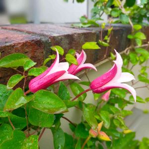 2年目です。 庭の柵に絡ませています。 今年は病気みたいで葉っぱが縮れてます😭 でも花はキレイに咲いてくれてます✨