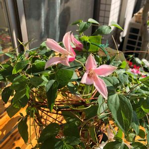 こんばんは🌇 頂いたクレマチスが部屋の中でツルが伸びほうだいになってきたので、大きな鉢に植え替えしたらとてもいい感じです😊