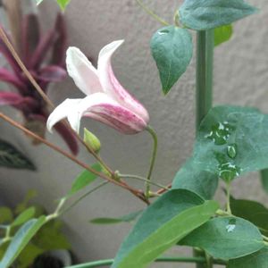 💕クレマチス エールフクシマ💕 おはようございます☔ 遂にエールフクシマさんが開花しました◝(⑅•ᴗ•⑅)◜..°♡ 去年母の日に娘からプレゼントされたので、 「絶対枯らしちゃいけない‼️」 の一心で頑張って育てました(ง˶ •̀ ̬•́˶)ง これからまだまだ沢山咲いてくれそうです🥰 では、行ってきます(*o̶̶̷ᴗo̶̶̷ )ノβуё♬