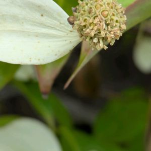 『山法師🤍🟢🍃ヤマボウシ』 ミズキ科 ミズキ属 中心に多数の花が集まる頭状の 花序を法師の坊主頭に 花びらに見える白い総苞片を 白い頭巾に見立てたもので 山に咲く法師(山法師)で 名前がつけられました❣️ 果実は食用になります🔴🍃 五弁ドクダミ🤍💛🍃の花を 見つけました🔍👀 山法師は通常、四弁の花 中には、五弁、六弁の花 見つけました‼️ 幸せの山法師の花かなぁ⁉️ 😅💦笑