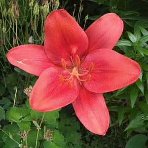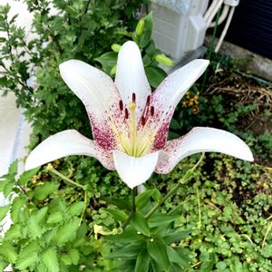 道端の花壇に咲いていました😊 スカシユリ。 ユリ科ユリ属のお花。 見事に咲き誇った姿が立派です🤗