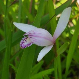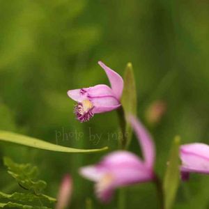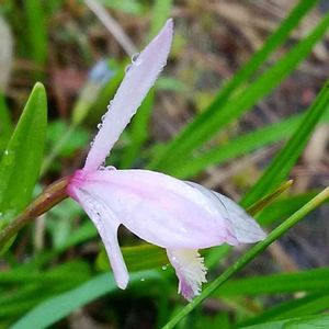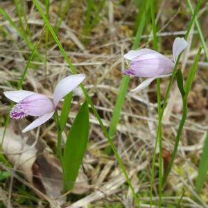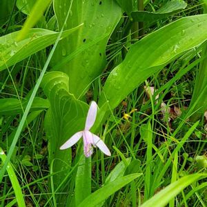 鴇草 ラン科 6月〜7月 根や茎が湿地を走り、よく群生する。葉は細いへら状で1本の茎に1枚のみ葉をつける。葉の展開と同時に花芽が伸びて、晩春から初夏に優しい桃紫色の花を咲かせる。地中には根茎が這い、次々と新しい芽を伸ばす。晩秋には葉が枯れて地上部がなくなり休眠に入る。