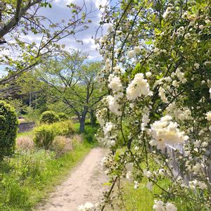 散歩道 モッコウバラと元気いっぱいの緑たち♪