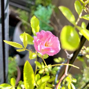 ミニバラ♡ 今年のわが家のバラ 開花第1号は 車庫暮らしのミニバラさん \\(*^▽^*)// すっかり温泉と(!?)化した 車庫の後ろ1/3 (^◇^;)\\ みなさんスクスク育ってます♪ 2024 春バラ〜①