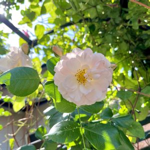 ピンクサマースノー♡ ヒラヒラの小さな花弁が可愛いツルバラさん♪ ツボミ〜咲き始めは白色です。 いつの日か車庫を覆うぐらいに成長… してくれるかな〜(*^▽^*)〜 2024 春バラ〜16