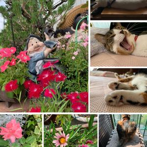 撫子とペチュニアが花盛り🌸 ミニバラ🌹おやゆび姫は そろそろおわりかな? ピンクの薔薇もそろそろ満開終わりかな? 朝の光景にゃん汰は出窓でおやすみ中💤 杏子も、おねむ(( _ _ ))..zzzZZ かと思ったらベランダの室外機の上で 鳥さん🦅見るのに忙しい👀 長〜いしっぽ😻見事な筋肉🙀 ガザニアも花盛りです🌸