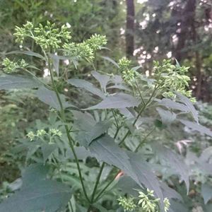 マルバフジバカマ キク科アゲラティナ属 咲いてみても❔😅。フジバカマ…🤔違うよね?。ヒヨドリバナ…🌱が😅 🔍していると、外来種のマルバフジバカマじゃないかと🤔 マルバフジバカマ」北アメリカ東部原産の帰化植物です。 なんと、この植物、箱根の強羅が発祥の地だそうで、箱根では、よく見かけるそうです。(以下貼り付け) 1896年(明治29年)に小石川植物園に移入され、1916年(大正5年)観賞用に強羅公園に植えられていたもので、これが公園外に逸出、強羅のまわりに広がっていったそうです。 現在は箱根を中心に関東各地から一部東北、近畿まで広がっているようです。 でも、こんなに人が来ない林でも繁殖してるなんて👀。外来種恐るべし❗