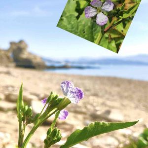 みなさまこんにちは🙌😆❣️ いつもいつも いいね!にコメント いただき 誠にありがとうございます🙇♀️💕 とうぶんのあいだ 家庭優先で の〜んびりでまいりたいと思います どうぞよろしくおねがいします🤲😌 ハマ大根の薄紫のおはな かわいく咲いていましたょ💕 奥にみえますのは蓬莱岩です♬😆 新和歌浦の海岸にて