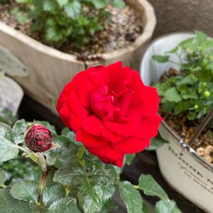 まだ蕾のない状態で購入してから1か月、ついにレッドクィーンが開花しました😍 先に咲くかと思われたもう1つの蕾はなぜか固まってしまいましたが、1輪でも目の覚めるような真っ赤な花に感激🤩