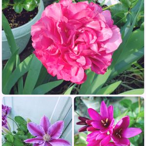 今日咲いた、赤系のお花たち。😃🎶 ⬆️昨年まきさんからいただいた、ステキな香りの薔薇、ブルジョア。これは、花径約12cm。 ↙️毎年花を咲かせてくれるクレマチス。 ↘️白い方はまだ蕾のイキシア。 頑張ろう❗日本‼️ 👊✨