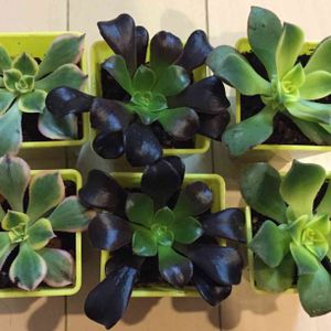久々にダイソーでお買い物しました( •̀∀•́ )✧ 左端は最近気になってたサンバーストぽいです( ›ω‹ ) 真ん中は黒法師?カシミアバイオレット? 臭くはないし、我が家の黒法師は真ん中までしっかり黒いからどうなんでしょう? アエオニウムの一輪挿しみたいなシルエット大好き(๑•̀ω•́๑)