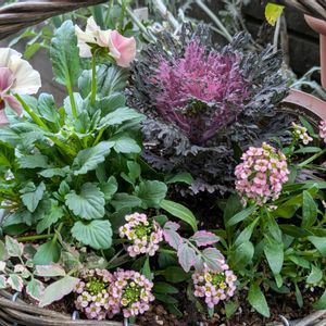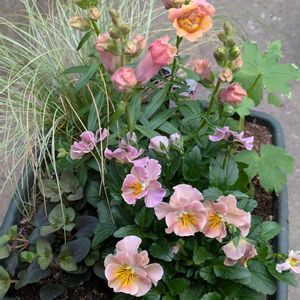 🥀寄せ植え🥀 同色系の2種の花と 金魚草2種を使い 寄植えにしました 金魚草が可愛い過ぎて 今シーズン多用してます