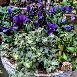 🥀寄せ植え🥀 ビオラの寄せ植えだらけ 沼にハマってます😁 べっぴんさんの幻夢 ラビット系のアソートと 可愛いです