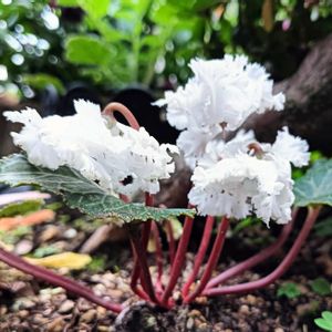 シクラメン スワン🤍🦢 昨年、鉢植えから地植えにしたはいいが あちこち3度くらい場所移動させ ようやく2、3週間前くらいに定位置が決まったスワン🤍🦢 (というか、空いてる隙間に無理やり植えた💦) 暑い時期の引っ越しにも耐え 今こうして花も咲かせ 偉かった!💮💯