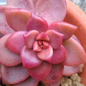 こんばんは😌 昨日の朝から、雨があまり入らない子供部屋のベランダに避難していたエケさん達。 おかげで、ほとんど濡れず無事でした😊 この子は、エケベリアの中で一番長く居るローラさん。少し開き気味ですが、最近、ほんのりピンクに色付いて、とてもキレイになってきました✨ 蒸れで葉が落ちたり、茎をチョンパした子を見てたので、元気なローラさんにとても癒されました(*´꒳`*)