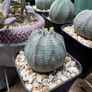 今日は37℃予想の猛暑日予報🥵 うちにある末っ子オベサ。 一段と縞模様がハッキリしてきて、白肌が強くなってきてます👀
