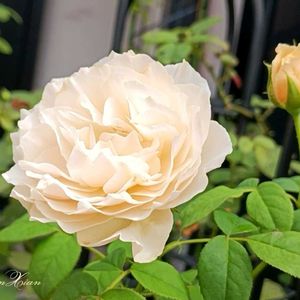 ROSE CHARLOTTE PERRIAND🤍💛🤎 シャルロットペリアン 新苗から初のカットせずそのまま思いきって咲かせてみました♡ 芍薬咲きのペリアン、明日の変化が楽しみです♪