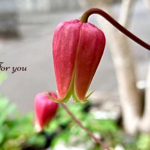 クレマチス For you💖 ツヤツヤ青みの濃いピンク💖 くるりと黄色いおちょぼぐち💛 微笑ましい可愛さがあります♡