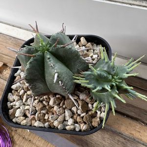 今日も35℃予想の猛暑日予報🥵 子株の方が花茎の数が多い不思議🤔 もしかしたら純血のメロフォルミスではなくホリダの血が少し混じってる個体なのかも? 突起の形もまんまホリダっぽいような👀 そのうち、この子株は切り離して育てると後々面白そう😁