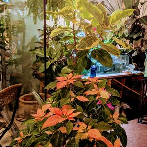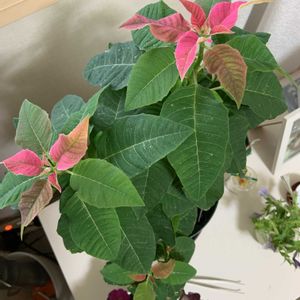 ポインセチア これ以上大きくなりそうにないので、室内に入れました。 去年のダメージから、立ち直れないうちに短日処理を始めたので、頼りない姿になってしまいました😅 クリスマスまでにどうなるか🤭 短日処理の様子はみどりのまとめに😉