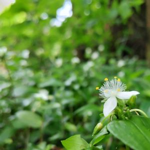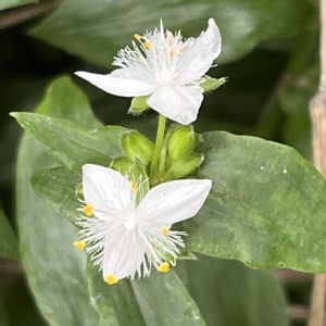 今日のお花、ツユクサ(トキワツユクサ)🍀 庭の片隅に、毎年顔を出してくれる青花さんは、まだ咲いていません🥲 トキワツユクサの白い花と蕊、美しく可愛らしく、見飽きませんね💚🤍💚💕 1️⃣2024/4/28 撮影🍀