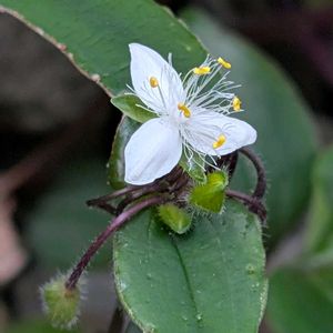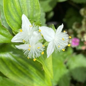蕊がツクツク…✨🤍 別名:ノハカタカラクサ 英名:Wandering Jew (彷徨うユダヤ人) River Spiderwort (川辺のツユクサ) Small Leaf Spiderwort (小葉のツユクサ)