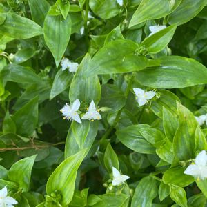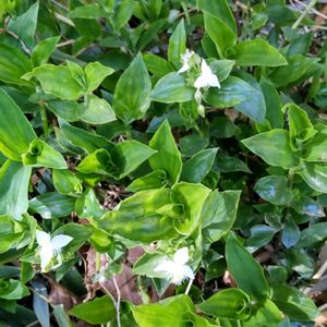 「湧水池脇で見つけた」 撮影📱2025.4.26 熊本市・上江津湖の 芭蕉園湧水池脇で撮影📱 トキワツユクサ🌼 三角の白色の花🌼に 葉脈🌿が綺麗な葉っぱ 湧水池脇で群生して 咲いてたよ🎵