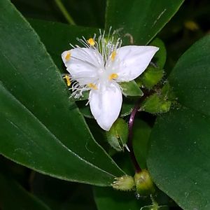 独特の三角形の白いお花です。 「トキワツユクサ」 遊歩道沿いの湿地で咲いていました。可愛いですが、要注意外来生物なんですね🤔 残念!
