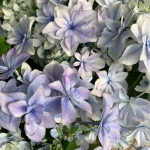 《ハイドランジア 空海》 今日はポツポツ☂️降り。゚○︎°。○︎◯︎。°○゚︎。 雨が降るたびに、この雨がコロナも洗い流してくれたらいいのに…って思います 雨に似合う紫陽花*。:°ஐ 淡いカラーの八重咲き ボリュームもあってとても綺麗です
