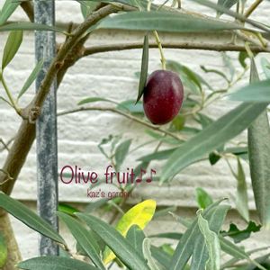 たつた一粒実ったオリーブの実が 色づいてきました💜 さて、この一粒どうしたら(゜〇゜;)?????