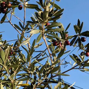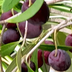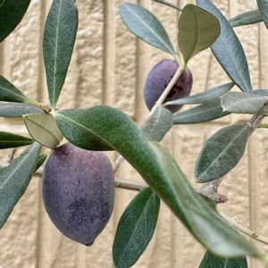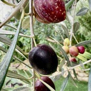 . 2025/10/18 ↓ 3m以上ある 我が家のオリーブの木 毎年10kg前後の オリーブの実を実らせてくれます 今年は9月初め頃に 3kg程の 1回目の収穫をしたので いつもより大きな実に 育っています 巨峰より大きいかも?? そろそろ2回目の収穫を したいなぁ⋅⃘⋅⃘͜ 1回目の収穫分は そろそろアクが抜けたので 塩漬けと、甘納豆作ろうかな𓀠 . .