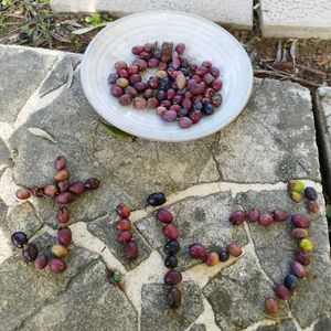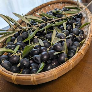 初めてのオリーブの実!収穫 こんな量なのに ドキドキワクワクしながら塩漬けし 、、、、 美味しかったらどうしよう アハハハハ〜〜^_^♡