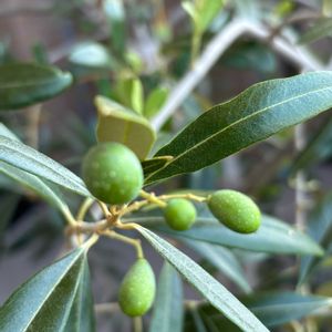 昨年お迎えした、オリーブ🫒に、実がつきはじめました。 初めての栽培です。 初めて開花を見て、実がつきはじめたのを見ました。 黒くなってから収穫し、塩漬けするのが簡単な渋抜き方法だと調べました💦 オリーブ、初めてだけど、うまくできるかな……? 葉も美しいです✨