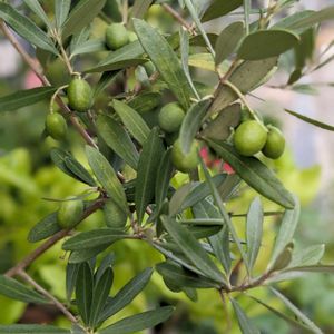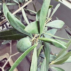 3、4年前位に購入したオリーブ。 去年初めて一つだけ実がつきました🫒 今年はなんと!10個も🫒 うちにも近所にもオリーブの木はないのだけど…そういう品種だったのかな😄