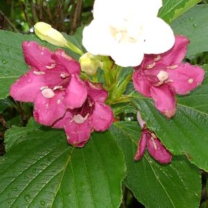 ハコネウツギ(箱根空木) 公園の駐車場に今年も元気に咲いていました。 白花からピンク、赤に咲き進むハコネウツギ。 日本固有の落葉低木。 スイカズラ科 別名:ベニウツギ 開花期: 5〜6月 花言葉:『移り気』『夢心地』『秘密』