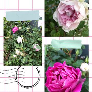 雨ですねー☂️ でも庭は満開です✨ 今朝のバラたち🌹 左上から時計回りに クイーンオブスウェーデン、ナウシカア、キャスリンモーレー、トロワラス
