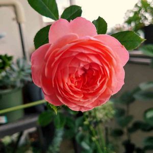 ロサのバラ。 雨の日に、玄関前に置いたらきれいに咲いた。