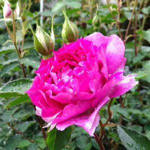 バラ二番目の開花はライラさんでした。 今年もいい赤紫色。そして毎度驚く強い香り。外に干した洗濯物の柔軟剤くらいの強さです。