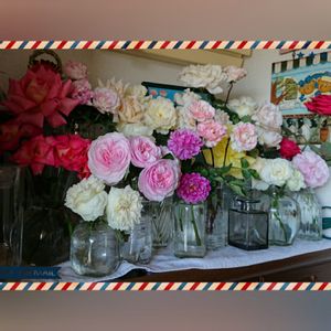 バラでいっぱいの玄関🌹 ダイニングテーブルにもバラを置いています。 さらにご近所さんや友人にお裾分けの毎日です😆💕✨ あー幸せ💕