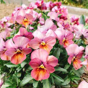 せっかくなので紹介したい!職場の「勝手に環境美化花壇」のビオラ✨全部格安ですがクオリティ高い‼️もうすぐチューリップも。一番左下はアイスプラント。笑