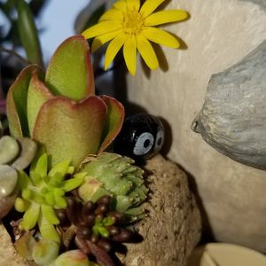 まっくろくろすけ 出ておいで~ でないと目玉をくりぬくぞ~ 👀ほとんど目玉だよ。 くりぬいたらふにゃふにゃ⁉️😱 ルビネの花が1個ずつ、咲き繋いでる。バトンは⁉️どれがバトンなのか見分けつかない😂🍆 🏷️トトロの日 春が近いのか 雨混じりの嵐。 良い一日を🎵