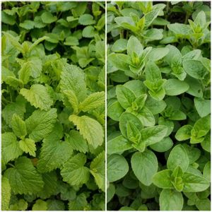 左 レモンバーム 黄色い花はまだ先ですが、菖蒲湯の代わりに使います。 右 オレガノ 咲かせてるだけですが、パセリを入れただけで草を食べさせたと言う夫には 草に見えるようです(笑)