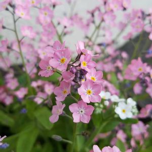 忘れな草 ピンクと白 少しブルーもお邪魔してる。 庭から鉢あげしてみた。 ウェルカムフラワー💞 寄せ植えというより 忘れな草だけです。