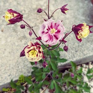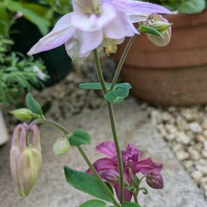 おはようございます こぼれ種の 西洋オダマキが3種類咲きました🥀