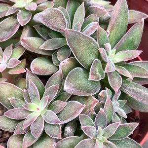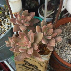 前回投稿した続き😉 面白ポイントです✨(私的に) ・エケベリアなのに少しモケっています😆ベルベットみたいな感じで気持ちいい💕(触りすぎ厳禁w) ・茎の下の方に赤ちゃんギッッッシリ👀 ・茎の赤ちゃんとは別に、土の中からもニョキっと赤ちゃん誕生(写っていませんが) 多肉初心者の私にとっては、かなり個性的な子😚💕 七福神のように子沢山で、土の中からもこんにちは☺️ 面白いです〜✨✨✨ 似た子をご存知でしたら、ぜひ教えてくださいね。その子もお迎えしたいです✨