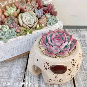 おはよ〜ございまーす ฅ^•ﻌ•^ฅ 仕事は明日からですが、そろそろ体も気持ちもダラダラモードから通常モードに戻さなくっちゃ💦٩( ‘ω’ )۶ 多肉棚の特等席に置いてある ぞうさん鉢のシルエットがかわいくなりました❣️ タニパトしながら、かわい〜ねぇ〜とひとりごと言ってる自分に笑笑ꉂ(ᵔᗜᵔ*)